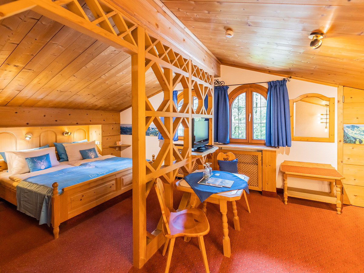Das Besondere unserer beliebten Junior-Suiten ist das alpenländische Flair, das die Zirben-Holz-Ausstattung der Zimmer ausstrahlt. Von dieser heimischen Holzart geht ein feiner, sehr dezenter Duft aus. Die Junior-Suiten haben eine Größe von ca. 25 m2.